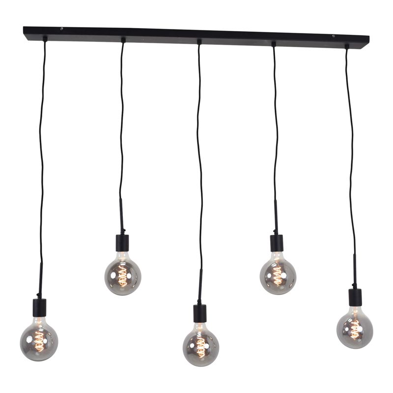 Product information Maximum wattage 60 Supply voltage 220-240V Number of lights 5 Lampholder type E27 Product information Light included No Width in cm 120 Height in cm 130 Length in cm 8.5 Dimmable Yes (not included) Warranty 2 years IP classification IP20 (dustproof) Colour Black Material Metal With switch No Area Kitchen, Living room, Bedroom, Hall, Office Style Industrial Article number Q10170