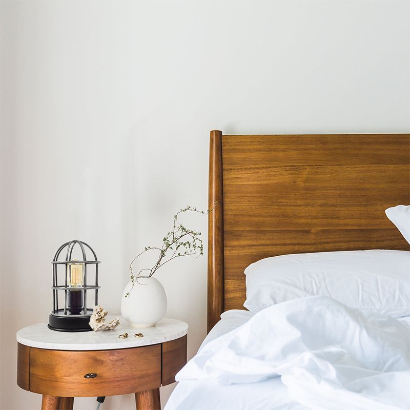 This industrial table lamp has an on/off switch on the cord with which you can easily turn the lamp on and off.