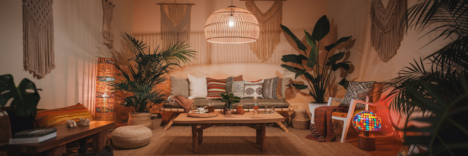Keep the mood warm and intimate with dimmable warm white (2200–2700K) and layered light: a soft ceiling glow, a few decorative pendants, and pools of light from table and floor lamps. Choose natural textures—rattan, bamboo, linen—and handcrafted details like patterned or tasselled shades to add depth. Mix metals (brass, bronze) with wood and ceramic for a collected feel. Hide cables neatly and use smart plugs or dimmers to switch from lively evening gatherings to cozy, candle-like ambience in seconds. The key to boho lighting is balance: eclectic yet harmonious, relaxed yet intentional.