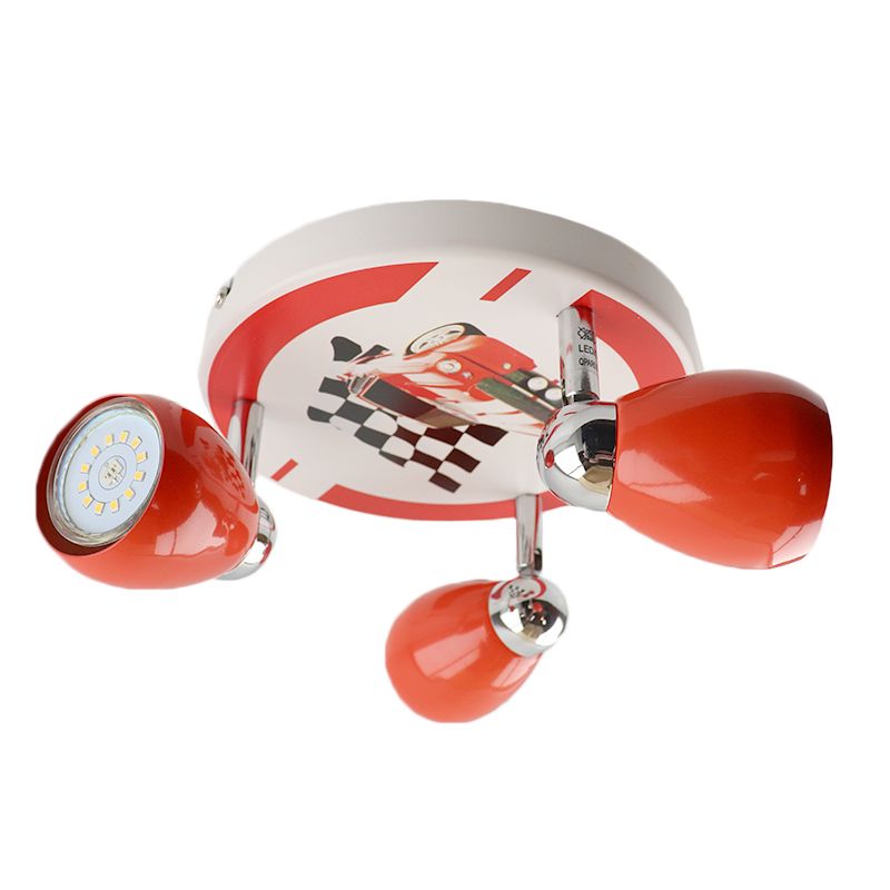 Product information Maximum wattage 2.5 Supply voltage 220-240V Number of lights 3 Number of Lumens 250 Product information Light colour 3000K (Warm white) Lampholder type GU10 Lightsource type included LED interchangeable Expected burning hours 15000 Light included Yes Width in cm 31 Diameter in cm 31 Weight in KG 1.042 Height in cm 11 Length in cm 14.5 Dimmable Yes (not included) Warranty 2 years IP classification IP20 (dustproof) Colour Red, White Material Metal Area Baby bedroom, Kid's bedroom Style Basic Article number Q10564 - Home