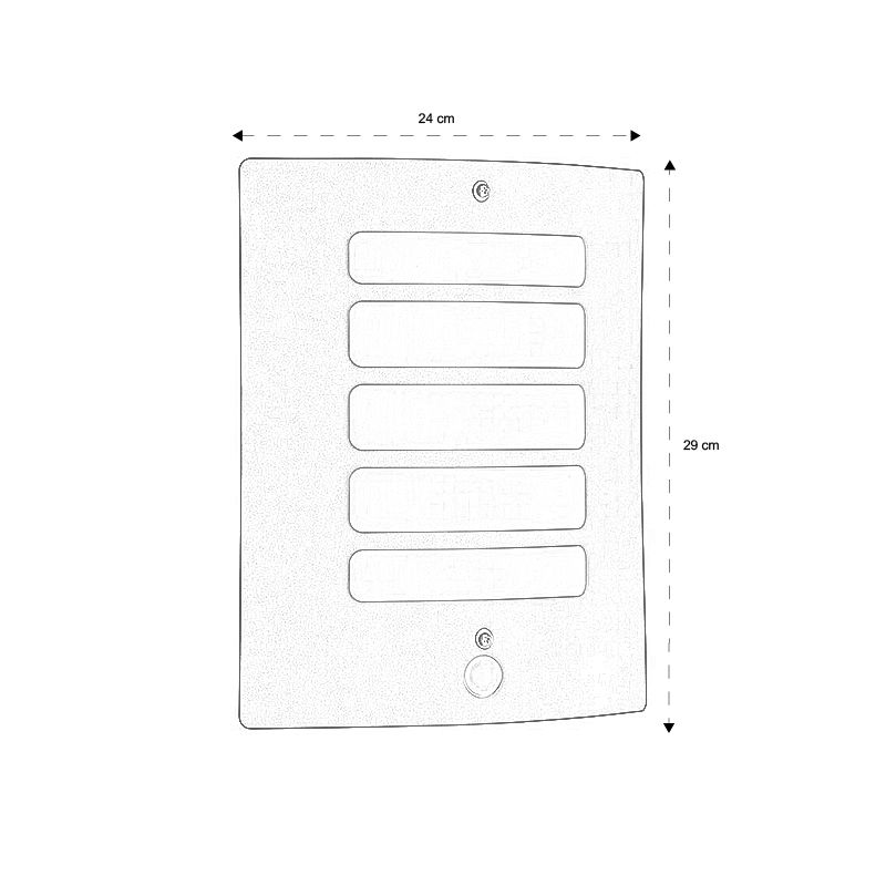Product information Maximum wattage 60 Supply voltage 220-240V Number of lights 1 Lampholder type E27 Product information Light included No Width in cm 24 Weight in KG 0.896 Height in cm 29 Length in cm 9 Dimmable No Warranty 2 years IP classification IP44 (water proof) Colour Anthracite Material Metal, Plastic With switch Yes Style Basic Switch type Motion sensor Article number Q11129
