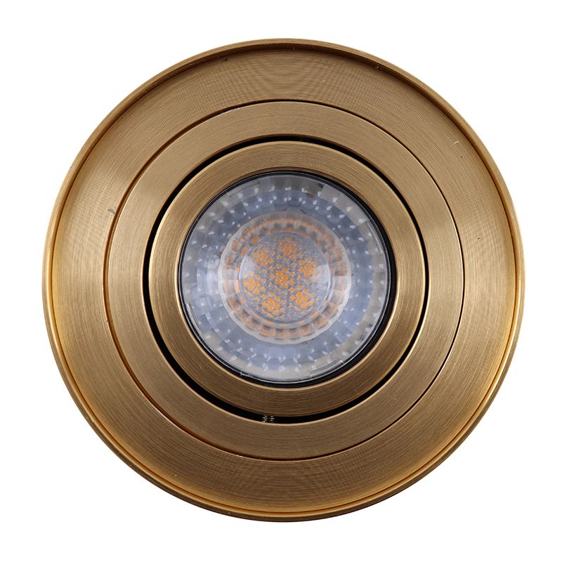 The brass surface mounted downlight Onno is made of metal. The brass surface mounted downlight is supplied without a light source. In this lamp a light source with a GU10 lamp holder is needed, the maximum wattage of the light source must not exceed 35 watt.