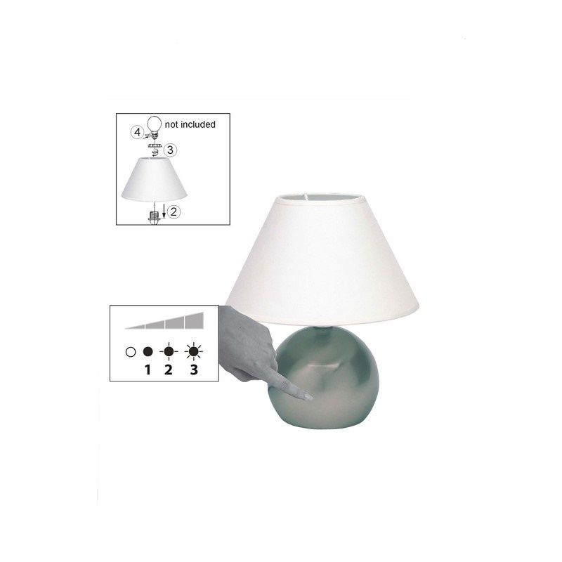 Product information Maximum wattage 40 Supply voltage 220-240V Number of lights 1 Lampholder type E14 Product information Light included No Width in cm 20.5 Diameter in cm 20.5 Weight in KG 0.713 Height in cm 24 Dimmable Yes (included) Warranty 2 years IP classification IP20 (dustproof) Colour Chrome, White Material Metal, Fabric With switch Yes With cord and plug Yes Area Living room, Bedroom Style Basic Switch type On/off touch switch on the cord Article number Q10953 - Home