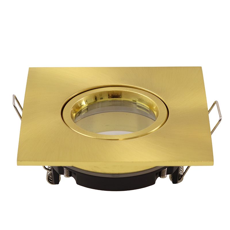 The modern bathroom recessed downlight Jill has the colour brass and is made of aluminium. The brass bathroom recessed downlight is supplied without a light source. In this lamp a light source with a GU10 lamp holder is needed, the maximum wattage of the light source must not exceed 50 watt.