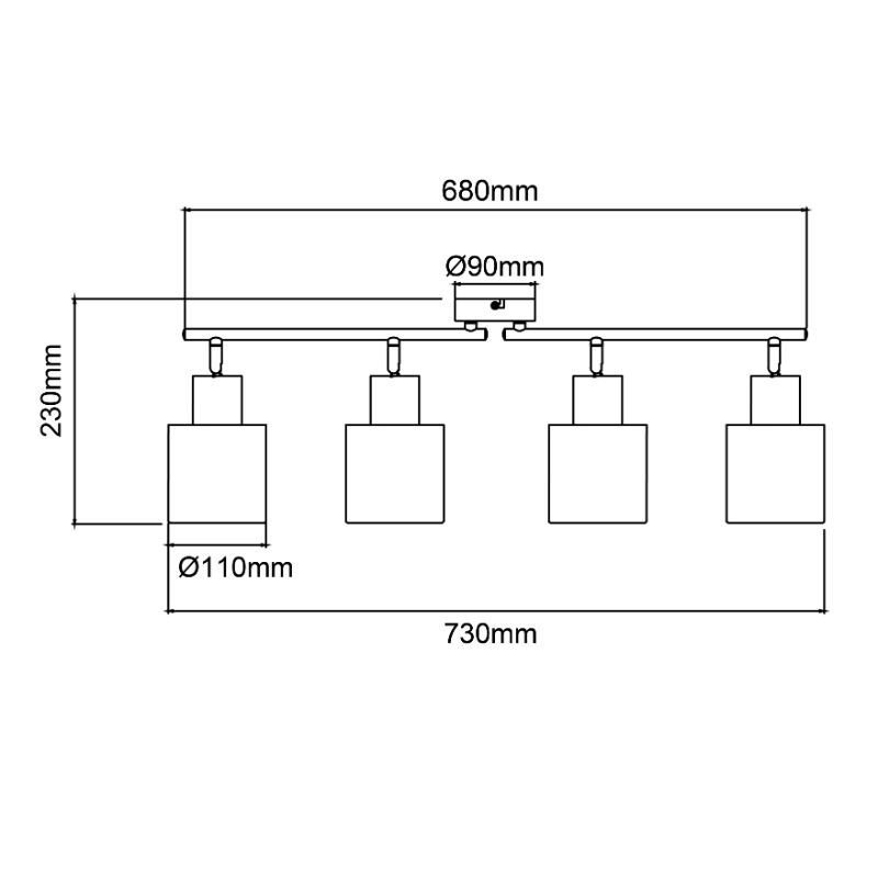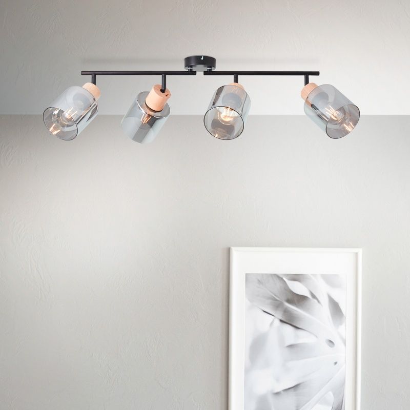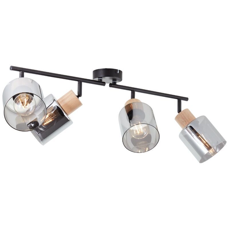 Product information Maximum wattage 40 Supply voltage 220-240V Number of lights 4 Lampholder type E27 Product information Light included No Width in cm 11 Weight in KG 1.458 Height in cm 23 Length in cm 73 Dimmable Yes (not included) Warranty 2 years IP classification IP20 (dustproof) Colour Grey, Black Material Metal, Glass Style Modern Article number Q79820