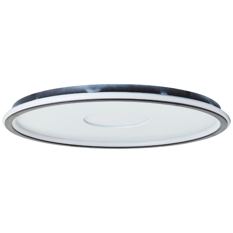 Product information Maximum wattage 44 Supply voltage 220-240V Energy label E Number of lights 1 Product information Number of Lumens 5400 Light colour 3000K (Warm white) Lampholder type LED integrated Lightsource type included Integrated LED Expected burning hours 15000 Light included Yes, integrated Width in cm 50.8 Diameter in cm 50.8 Weight in KG 1.925 Height in cm 3.6 Dimmable Yes (included) Warranty 2 years IP classification IP20 (dustproof) Colour White, Black Material Plastic Style Modern Article number Q32674 - Home