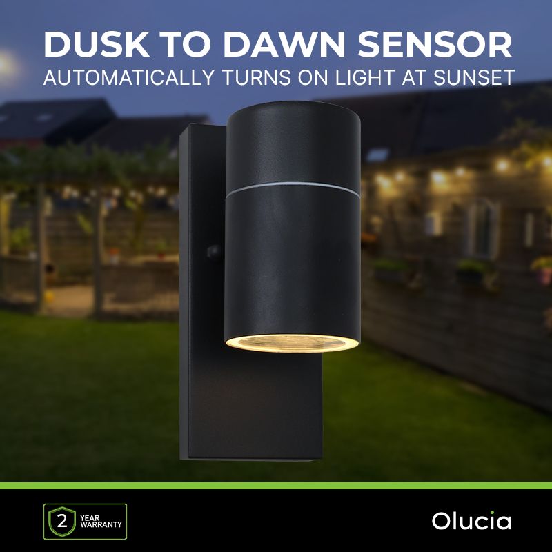 Often bought togetherLamp and non-dimmable light sourceModern outdoor wall light with dusk to dawn sensor black, Pedro, IP44Special Price 24.99 RRP: Regular Price 34.99Olucia GU10 LED bulb Antonie, black, 3W, 2700KSpecial Price 5.99 RRP: Regular Price 6.9930.98 RRP:  41.98Complete your lamp with the right light sourceLamp and dimmable light sourceModern outdoor wall light with dusk to dawn sensor black, Pedro, IP44Special Price 24.99 RRP: Regular Price 34.99Dimmable Olucia GU10 LED bulb Antonie, black, 5W, 2700KSpecial Price 6.99 RRP: Regular Price 7.9931.98 RRP:  42.98Vervollständige deine Lampe mit der richtigen Lichtquelle!Fixture and Smart GU10 WiFi LED lampModern outdoor wall light with dusk to dawn sensor black, Pedro, IP44Special Price 24.99 RRP: Regular Price 34.99GU10 Wifi Smart LED Bulb, all colors and warm whiteSpecial Price 9.99 RRP: Regular Price 13.9934.98 RRP:  48.98Complete your lamp with the right light sourceSpecifications
