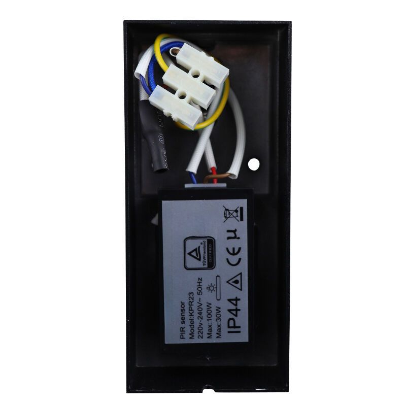 Product information Maximum wattage 35 Supply voltage 220-240V Number of lights 1 Lampholder type GU10 Product information Light included No Width in cm 6.8 Height in cm 15.2 Length in cm 11 Dimmable Yes (not included) Warranty 2 years IP classification IP54 (water proof) Colour Black Material Aluminium With switch Yes Style Modern Switch type Motion sensor Article number Q51735 - Home