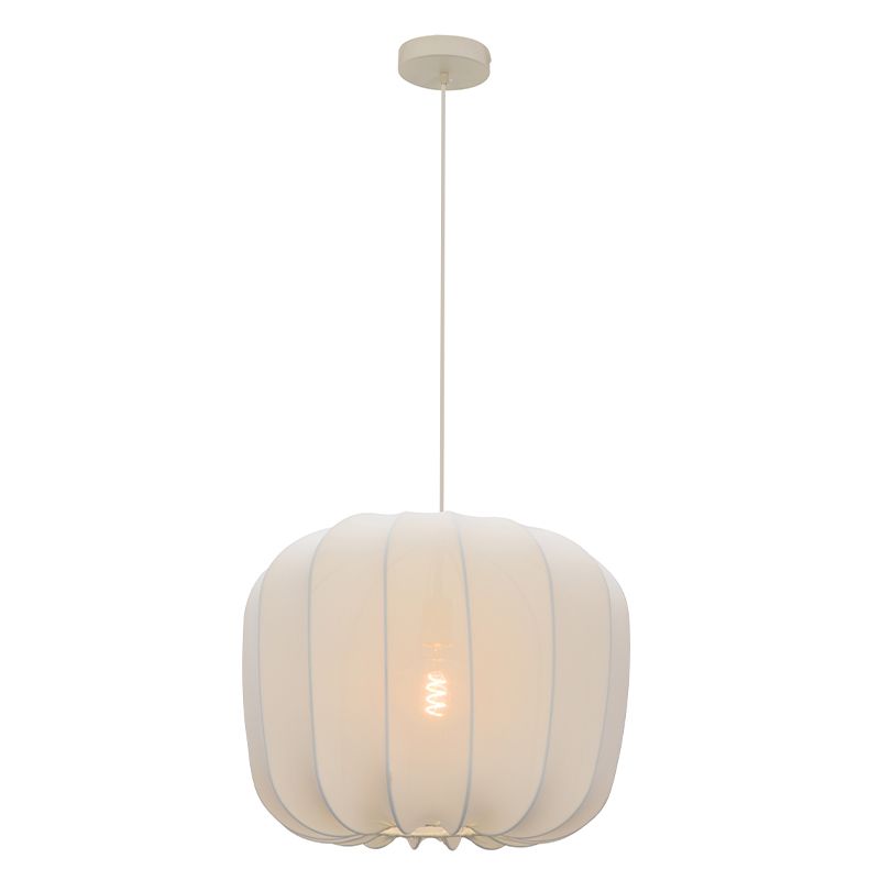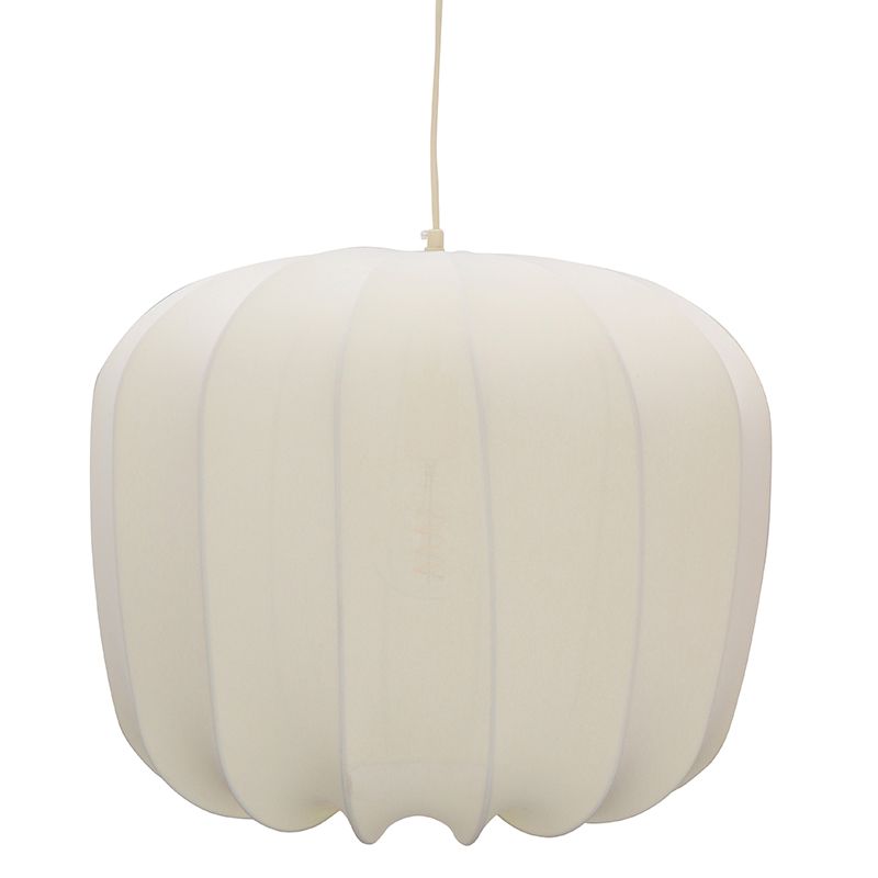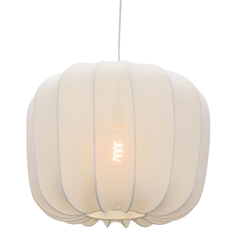 The modern pendant light Deborah has the colour white and is made of fabric. The white pendant light is supplied without a light source. In this lamp a light source with a E27 lamp holder is needed, the maximum wattage of the light source must not exceed 40 watt.
