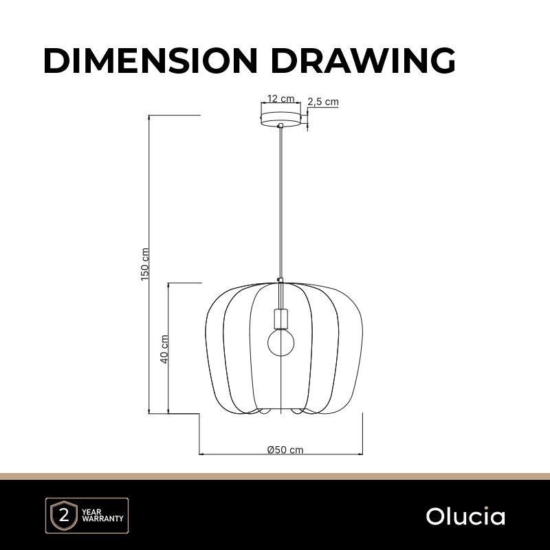 Product information Maximum wattage 40 Supply voltage 220-240V Number of lights 1 Lampholder type E27 Product information Light included No Width in cm 50 Width base/mounting plate 12 Diameter in cm 50 Height in cm 150 Height base/mounting plate 2.5 Length in cm 50 Length base/mounting plate 12 Dimmable Yes (not included) Warranty 2 years IP classification IP20 (dustproof) Colour White Material Metal, Fabric Style Modern Article number Q18640