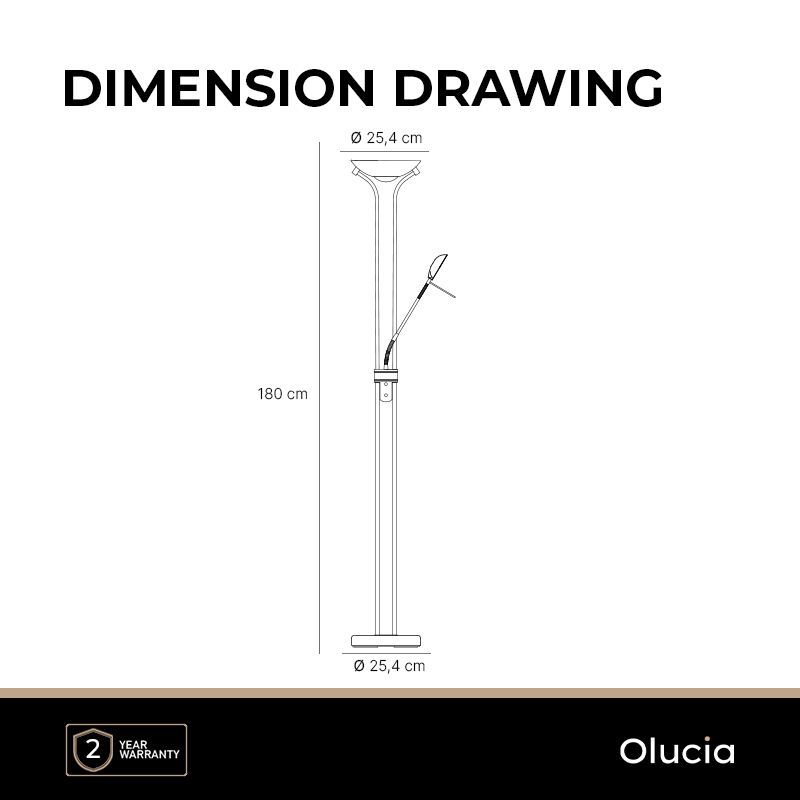 Product information Maximum wattage 18 Supply voltage 220-240V Energy label F Number of lights 2 Product information Number of Lumens 1700 Light colour 3000K (Warm white) Lampholder type LED integrated Lightsource type included Integrated LED Expected burning hours 20000 Light included Yes, integrated Width in cm 25 Diameter in cm 25 Weight in KG 3 Height in cm 180 Dimmable Yes (included) Warranty 2 years IP classification IP20 (dustproof) Colour Nickel Material Metal, Plastic With switch Yes With cord and plug Yes Area Living room, Bedroom, Office Style Modern Switch type On/off switch on the cord Article number Q26622 - Home