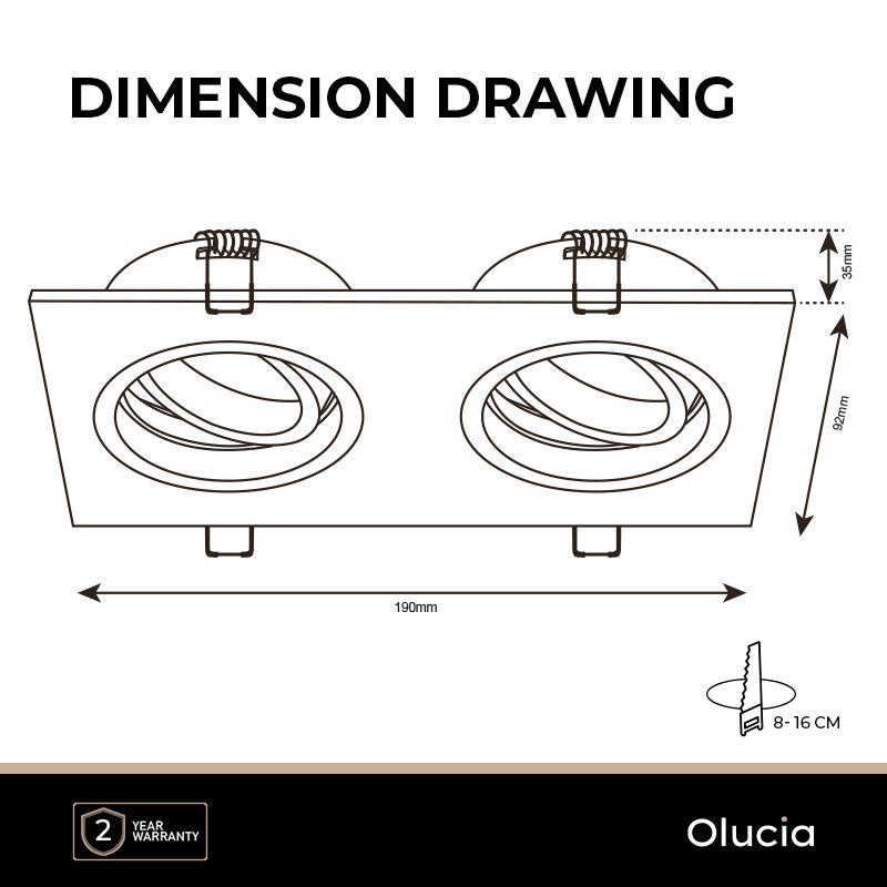 Product information Maximum wattage 50 Supply voltage 220-240V or 12V Number of lights 2 Lampholder type GU10 Product information Light included No Width in cm 19 Weight in KG 0.38 Height in cm 3.7 Built-in height in cm 3.8 Length in cm 9.2 Dimmable Yes (not included) Warranty 2 years IP classification IP20 (dustproof) Colour Black Material Metal With switch No With cord and plug No Area Kitchen, Living room Style Modern Article number Q24250