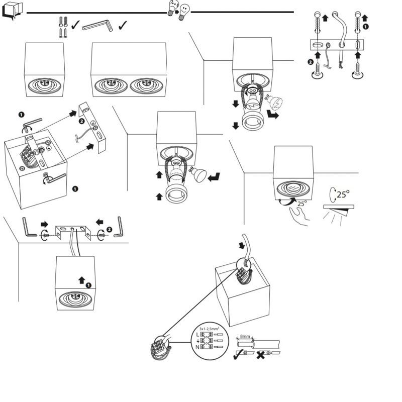 Product information Maximum wattage 25 Supply voltage 220-240V Number of lights 1 Lampholder type GU10 Product information Light included No Width in cm 9.6 Depth in cm 9.6 Height in cm 12.5 Dimmable Yes (not included) Warranty 2 years IP classification IP20 (dustproof) Colour White Material Aluminium With switch No Area Kitchen, Living room, Bedroom Style Modern Article number Q19819 - Home