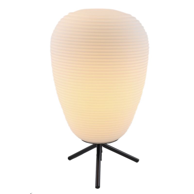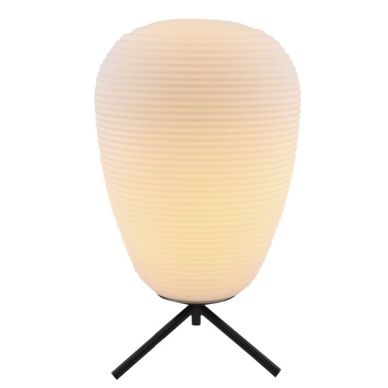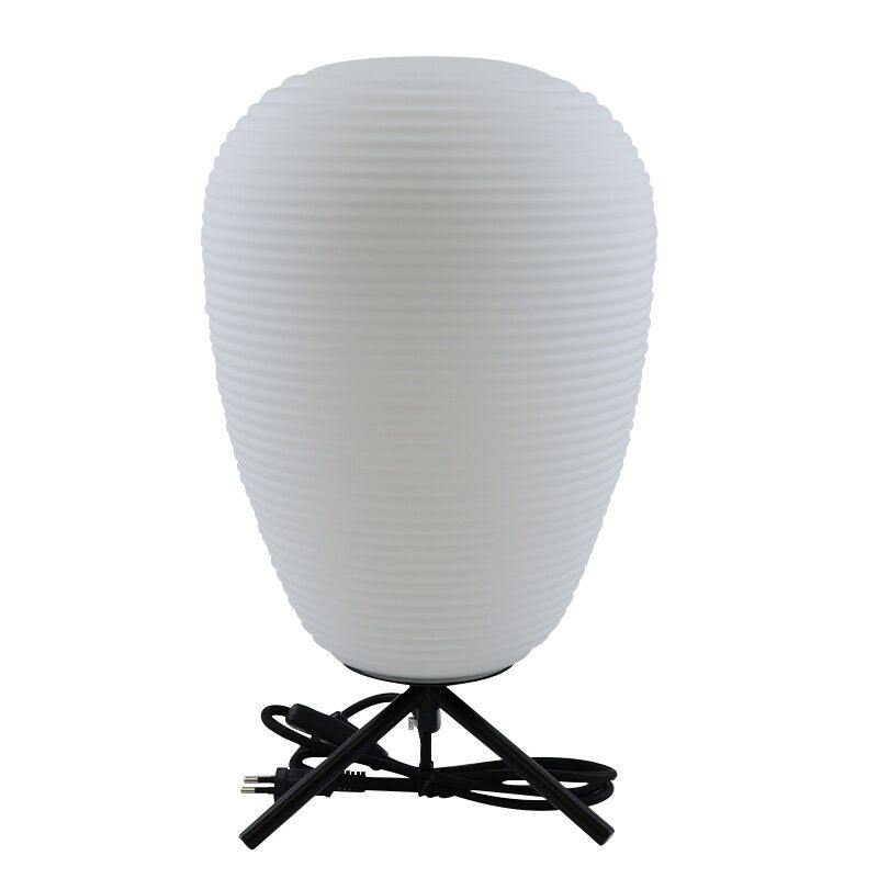 The modern table lamp Davide has the colour white and is made of glass. The white table lamp is supplied without a light source. In this lamp a light source with a E27 lamp holder is needed, the maximum wattage of the light source must not exceed 40 watt.