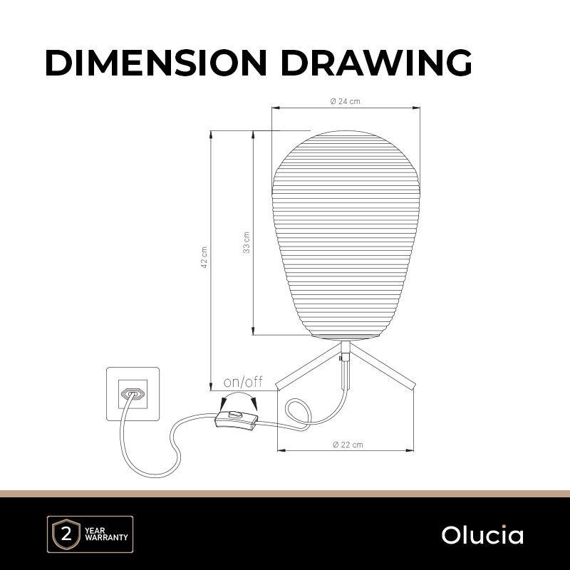 Product information Maximum wattage 40 Supply voltage 220-240V Number of lights 1 Lampholder type E27 Product information Light included No Width in cm 24 Diameter in cm 24 Height in cm 42 Cable length 150 Length in cm 24 Dimmable Yes (not included) Warranty 2 years IP classification IP20 (dustproof) Colour White, Black Material Metal, Glass With switch Yes With cord and plug Yes Style Modern Switch type On/off switch on the cord Article number Q52387