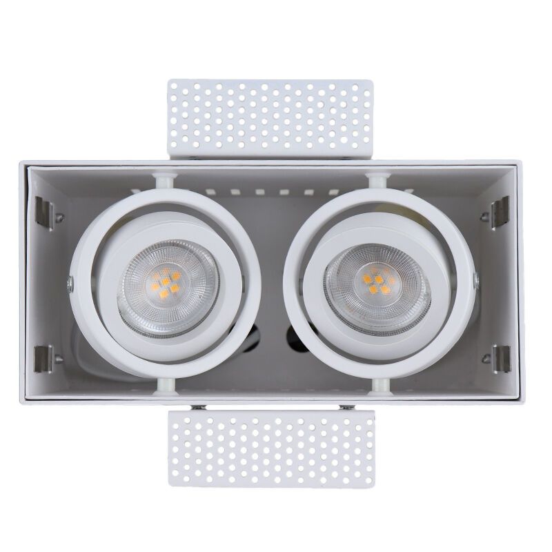 The modern trimless recessed downlight Joost has the colour white and is made of metal. The white trimless recessed downlight is supplied without light sources. This lamp requires 2 light sources with GU10 lamp holders. The maximum wattage of the light sources must not exceed 50 watts per bulb.