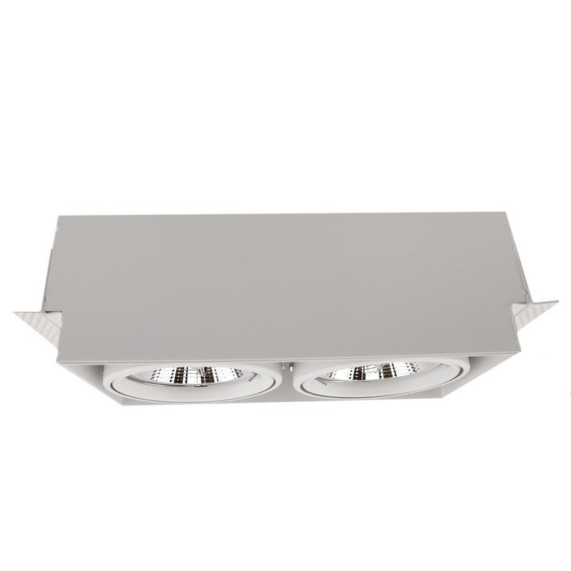 The modern trimless recessed downlight Wilhelm has the colour white and is made of metal. The white trimless recessed downlight is supplied without light sources. This lamp requires 2 light sources with GU10 (AR111) lamp holders. The maximum wattage of the light sources must not exceed 15 watts per bulb.