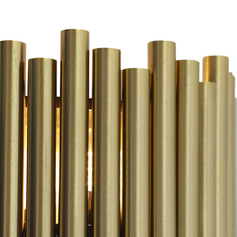 The modern wall light Joelle has the colour brass and is made of aluminium. The brass wall light is supplied without a light source. In this lamp a light source with a E27 lamp holder is needed, the maximum wattage of the light source must not exceed 40 watt.