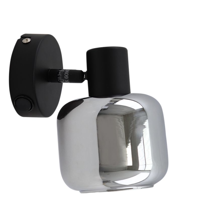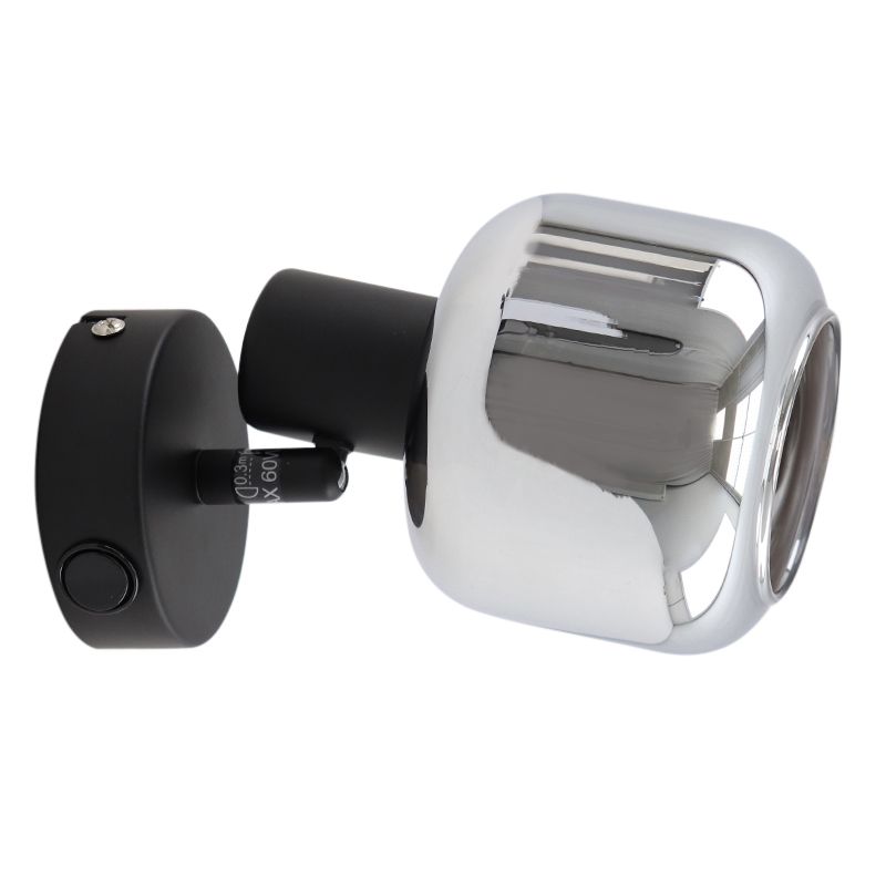 Product information Maximum wattage 25 Supply voltage 220-240V Number of lights 1 Lampholder type E14 Product information Light included No Width in cm 8 Diameter in cm 8 Height in cm 8 Length in cm 10 Dimmable Yes (not included) Warranty 2 years IP classification IP20 (dustproof) Colour Black Material Metal, Glass With switch Yes Style Modern Switch type On/off switch on the product Article number Q28329 - Home