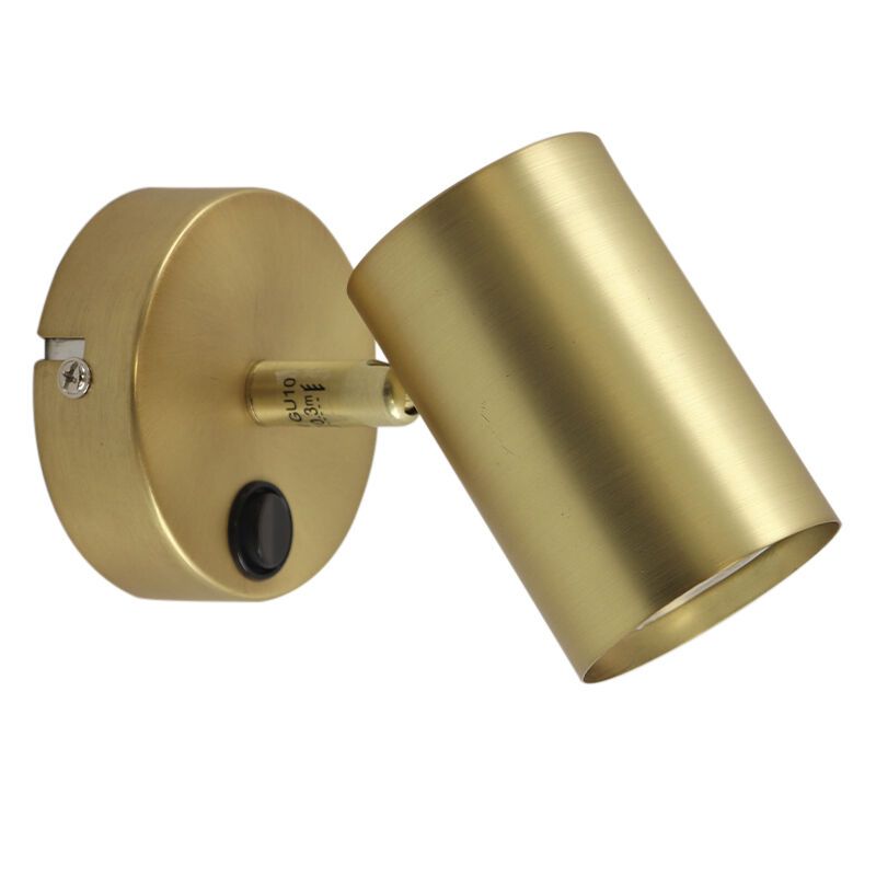The modern wall spotlight Elena has the colour brass and is made of metal. The brass wall spotlight is supplied without a light source. In this lamp a light source with a GU10 lamp holder is needed, the maximum wattage of the light source must not exceed 35 watt.