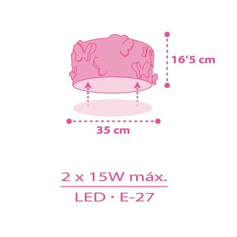 Product information Maximum wattage 25 Supply voltage 220-240V Number of lights 2 Lampholder type E27 Product information Light included No Width in cm 33 Diameter in cm 33 Weight in KG 0.77 Height in cm 17 Dimmable Yes (not included) Warranty 2 years IP classification IP20 (dustproof) Colour Multicolour Material Plastic Area Baby bedroom, Kid's bedroom Style Basic Article number Q33926 - Home