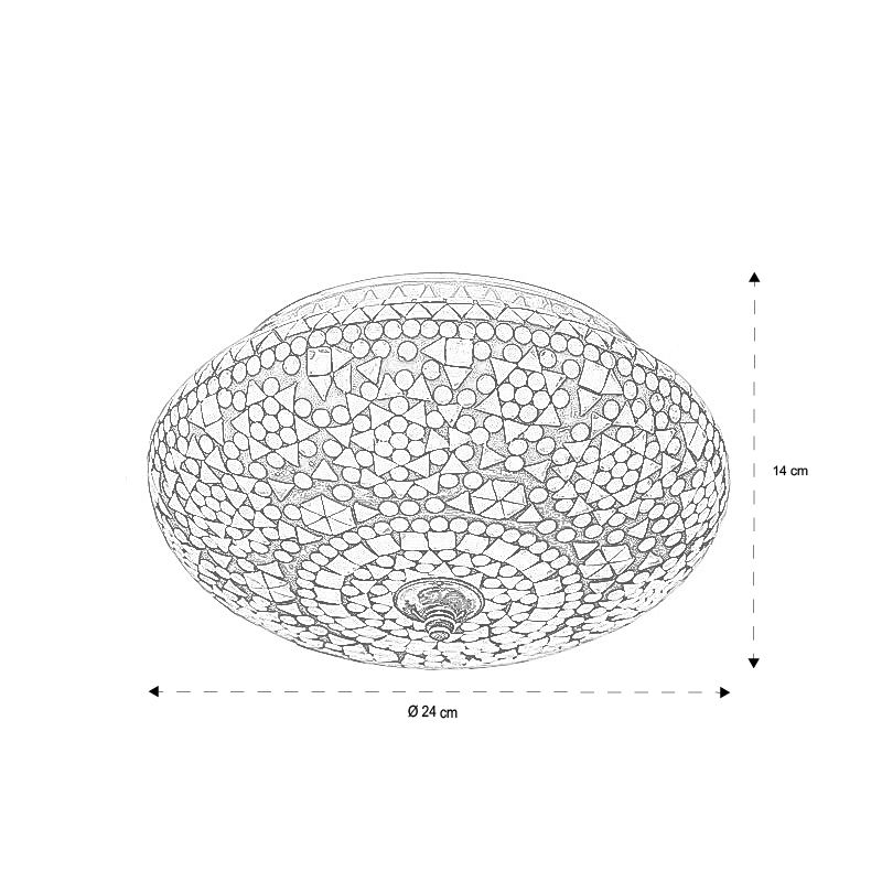 Product information Maximum wattage 40 Supply voltage 220-240V Number of lights 2 Lampholder type E14 Product information Light included No Width in cm 24 Diameter in cm 24 Height in cm 14 Dimmable Yes (not included) Warranty 2 years IP classification IP20 (dustproof) Colour Multicolour Material Metal, Mosaic Area Living room, Bedroom Style Oriental Article number Q20220 - Home
