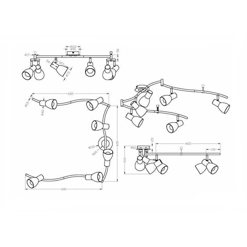Product information Maximum wattage 5 Supply voltage 220-240V Number of lights 6 Number of Lumens 400 Product information Light colour 3000K (Warm white) Lampholder type E14 Lightsource type included LED interchangeable Expected burning hours 25000 Light included Yes Width in cm 180 Weight in KG 2.32 Height in cm 21 Length in cm 11 Dimmable No Warranty 2 years IP classification IP20 (dustproof) Colour Nickel Material Metal, Glass With switch No With cord and plug No Area Living room, Bedroom Style Modern Article number Q13078 - Home