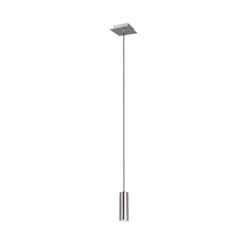 The nickel pendant light Kaso has the style modern and is made of metal. This modern pendant light has a GU10 lamp holder and is supplied without a light source. The lamp can accommodate light sources with a maximum power of 35 watts.