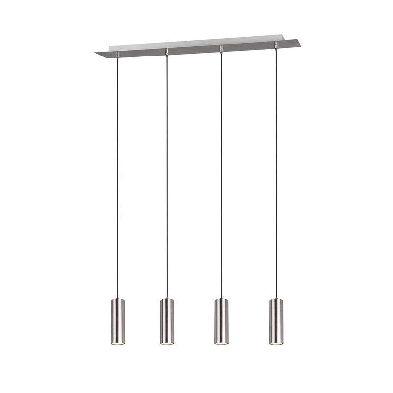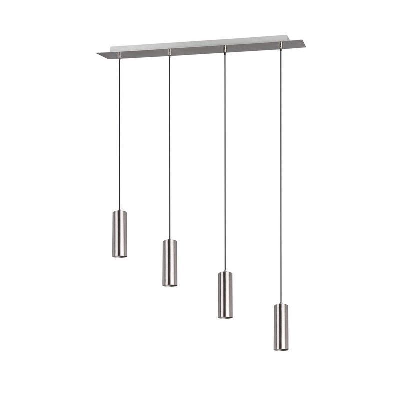 The nickel pendant light Kaso has the style modern and is made of metal. This modern pendant light has 4 GU10 lamp holders and is supplied excluding 4 light sources. The lamp can accommodate light sources with a maximum power of 35 watts per bulb.