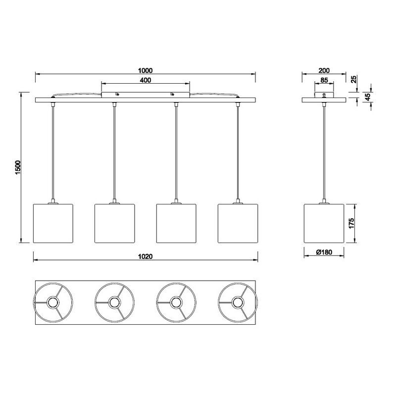 Product information Maximum wattage 60 Supply voltage 220-240V Number of lights 4 Lampholder type E27 Product information Light included No Width in cm 100 Weight in KG 3.6 Height in cm 150 Length in cm 20 Dimmable Yes (not included) Warranty 2 years IP classification IP20 (dustproof) Colour Nickel Material Metal Area Living room, Bedroom Style Vintage Article number Q25549 - Home