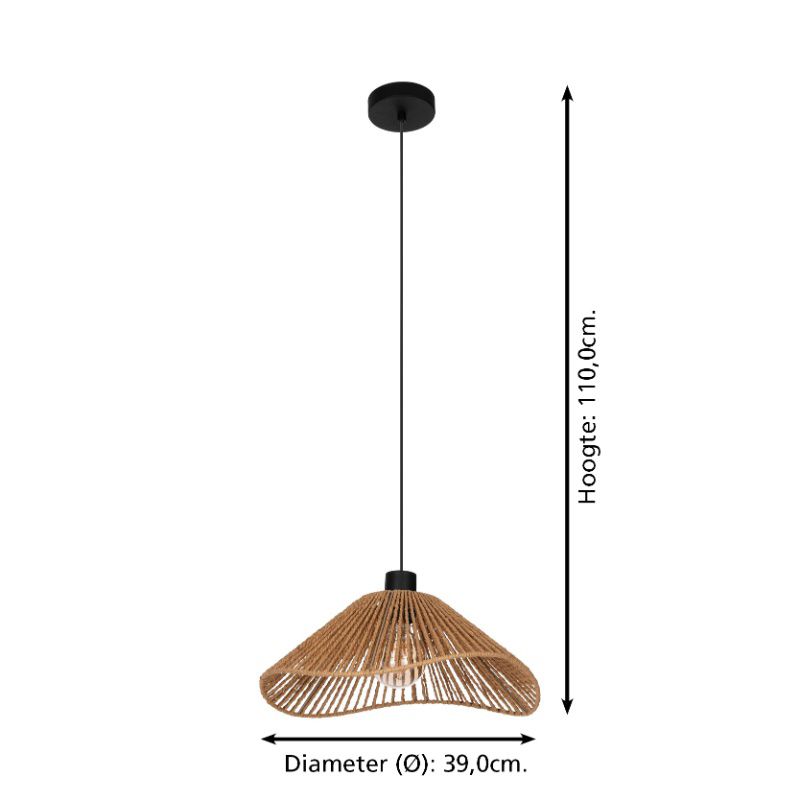 Product information Maximum wattage 60 Supply voltage 220-240V Number of lights 1 Lampholder type E27 Product information Light included No Width in cm 39 Diameter in cm 39 Height in cm 110 Length in cm 39 Dimmable No Warranty 2 years IP classification IP20 (dustproof) Colour Brown, Black Material Steel, Paper Style Rustic Article number Q21327 - Home