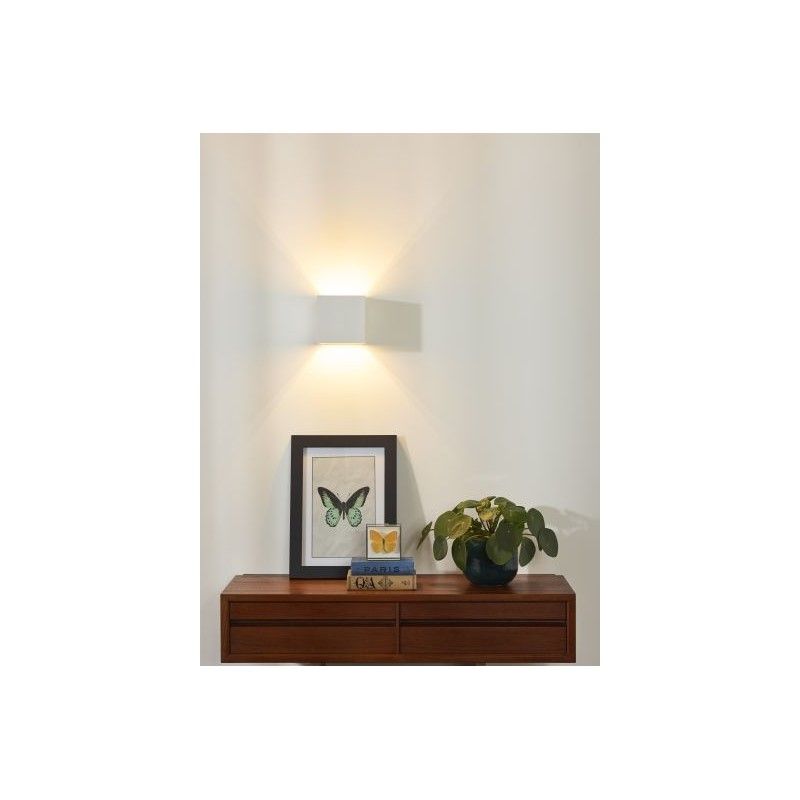 The plaster wall light Gipsy has the colour white and a modern design. This modern wall light is supplied without a light source. The lamp has a G9 lamp holder and the maximum power of the light source must not exceed 40 watts.
