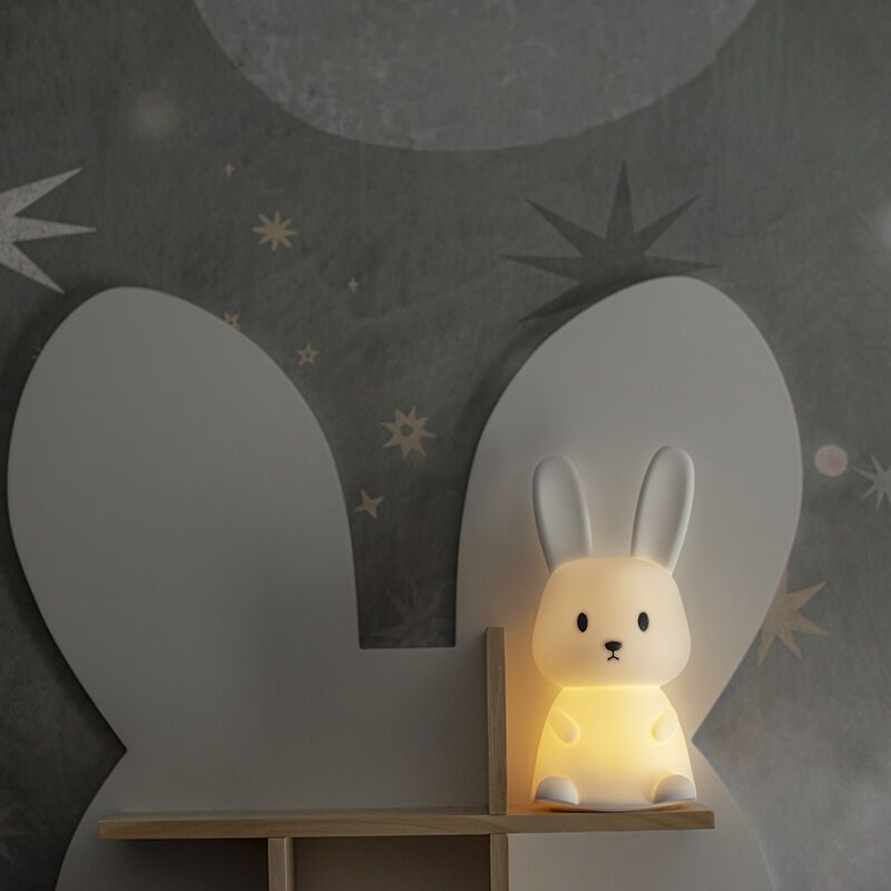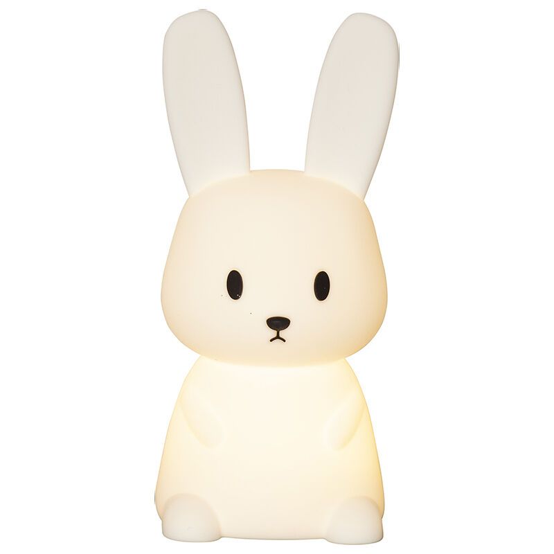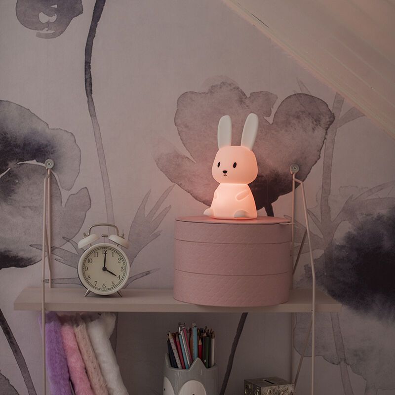 The white kid's night light Bunny is made of plastic. The white kid's night light is equipped with integrated LED. The lamp has a power of 0,5 watt and the light colour RGBW (all colours + white). With RGBW lighting you can choose almost all light colours and white tones.