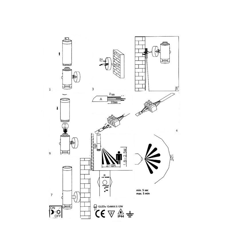 Product information Maximum wattage 4 Supply voltage 220-240V Energy label E Number of lights 1 Product information Number of Lumens 300 Light colour 3000K (Warm white) Lampholder type LED integrated Lightsource type included Integrated LED Expected burning hours 20000 Light included Yes, integrated Width in cm 7.5 Diameter in cm 7.5 Weight in KG 0.926 Height in cm 38 Length in cm 15 Dimmable No Warranty 2 years IP classification IP44 (water proof) Colour Chrome, White Material Metal, Plastic With switch Yes Style Basic Switch type Motion sensor Article number Q11067 - Home