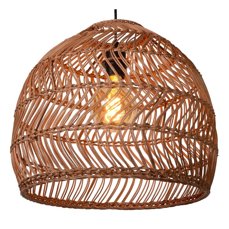 The rattan pendant light Moloko has the colour yellow and a rustic design. This rustic pendant light is supplied without a light source. The lamp has a E27 lamp holder and the maximum power of the light source must not exceed 40 watts.