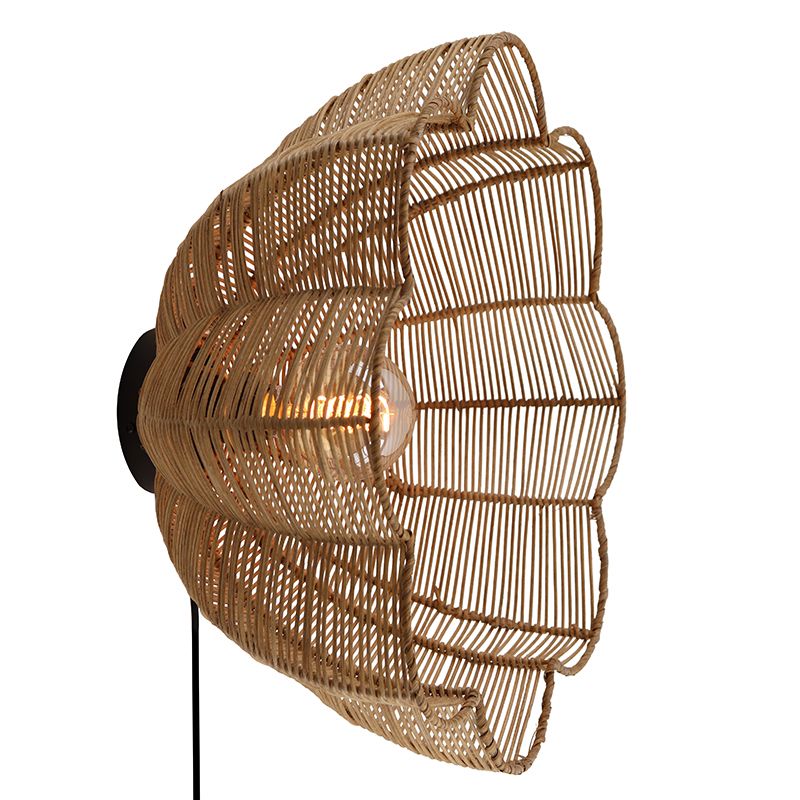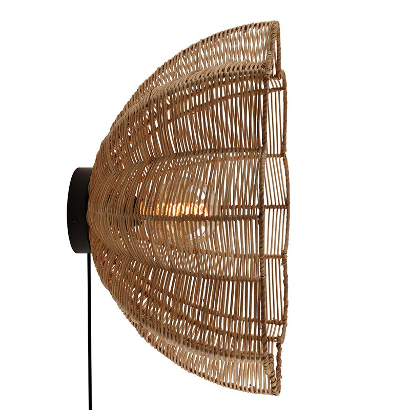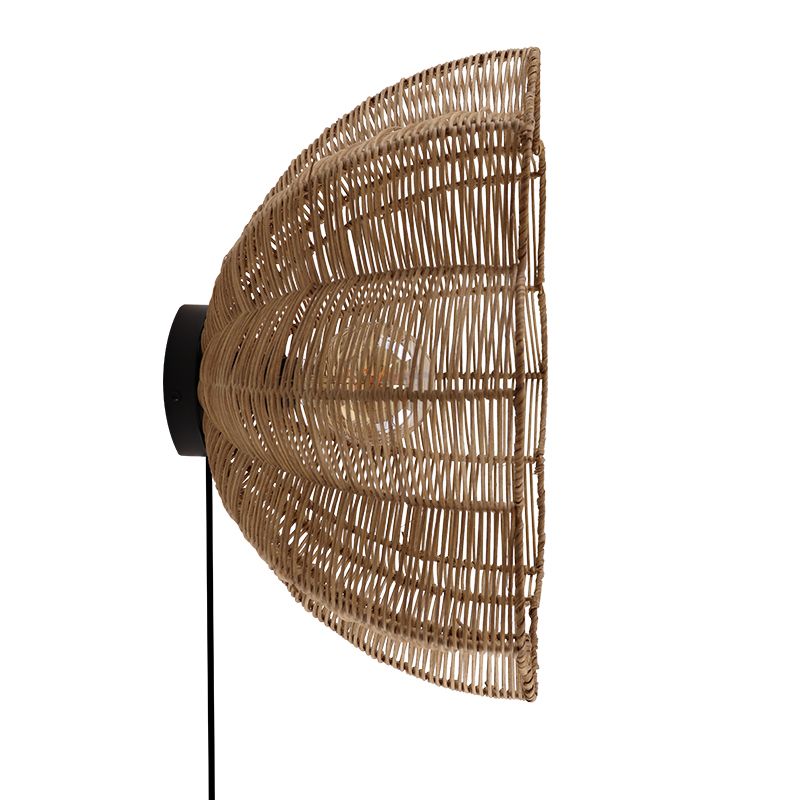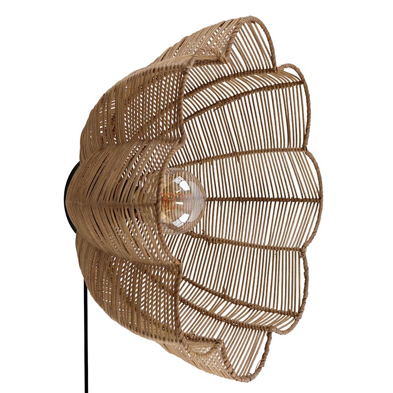 The rattan wall light Heather has the colour brown and a rustic design. This rustic wall light is supplied without a light source. The lamp has a E27 lamp holder and the maximum power of the light source must not exceed 7 watts.