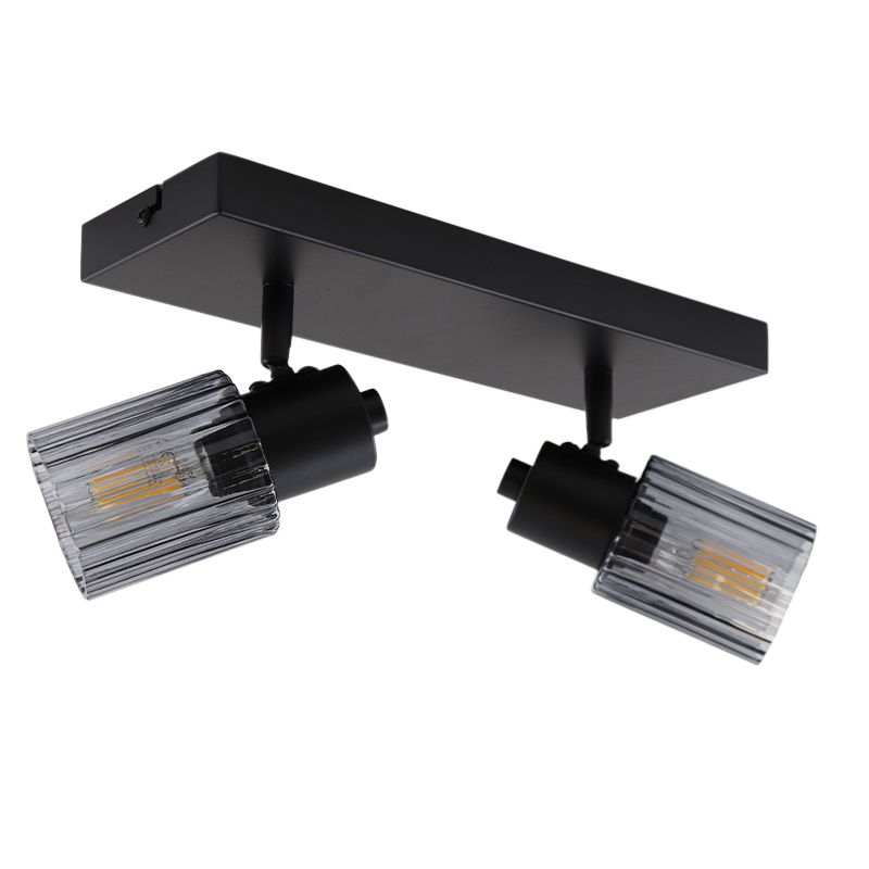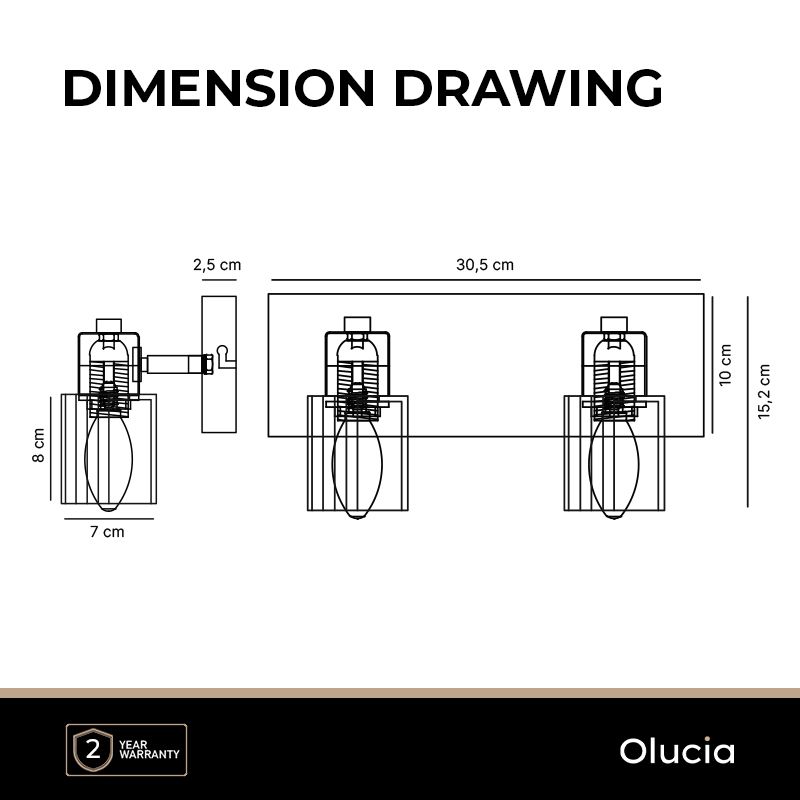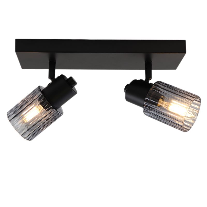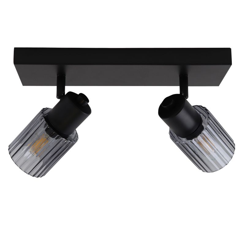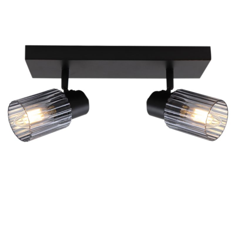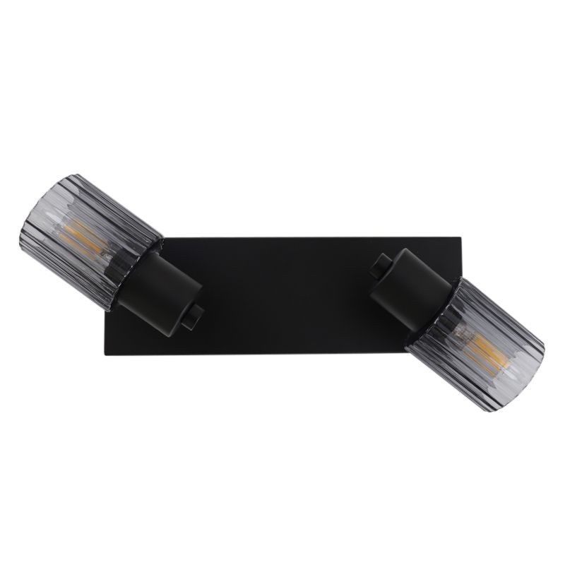 Product information Maximum wattage 40 Supply voltage 220-240V Number of lights 2 Lampholder type E14 Product information Light included No Width in cm 15.2 Width base/mounting plate 10 Height in cm 12.9 Height base/mounting plate 2.5 Length in cm 30.5 Length base/mounting plate 30.5 Dimmable Yes (not included) Warranty 2 years IP classification IP20 (dustproof) Colour Grey, Black Material Metal, Glass Style Retro Article number Q67370 - Home