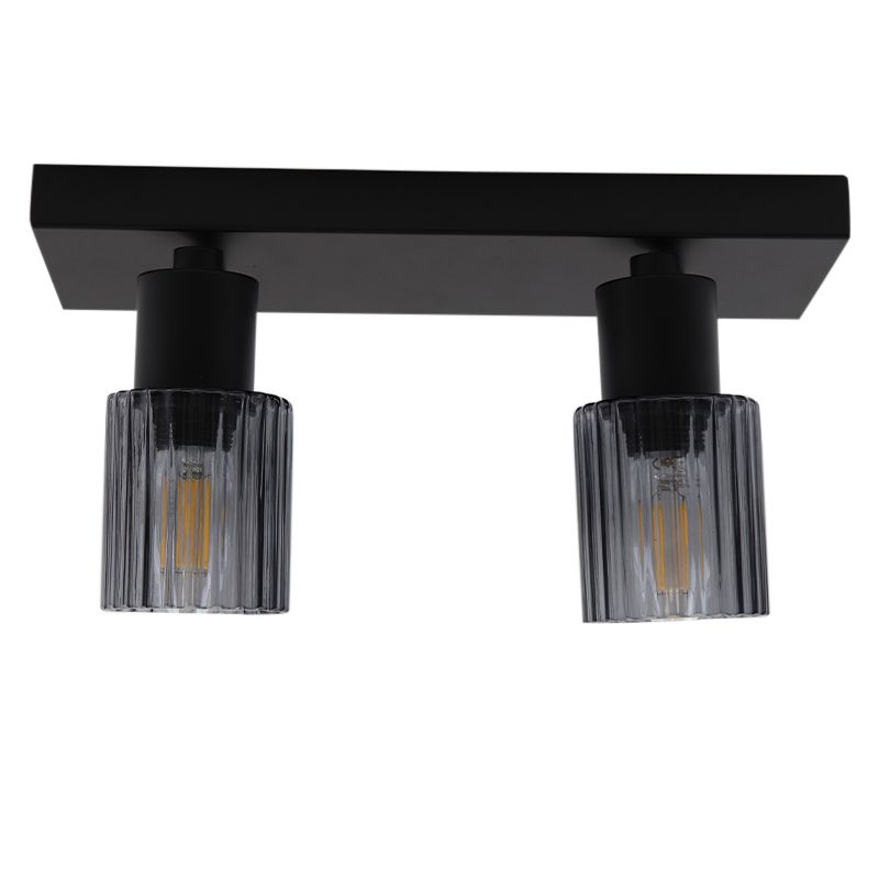 The retro ceiling spotlight Omer has the colour grey and is made of glass. The grey ceiling spotlight is supplied without light sources. This lamp requires 2 light sources with E14 lamp holders. The maximum wattage of the light sources must not exceed 40 watts per bulb.