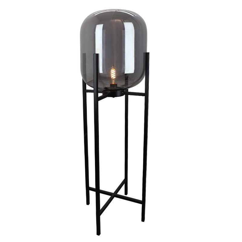 Product information Maximum wattage 7 Supply voltage 220-240V Number of lights 1 Lampholder type E27 Product information Light included No Width in cm 38 Height in cm 120 Length in cm 38 Dimmable Yes (not included) Warranty 2 years IP classification IP20 (dustproof) Colour Grey, Black Material Metal, Glass With switch Yes With cord and plug Yes Style Retro Switch type On/off switch on the cord Article number Q10768 - Home