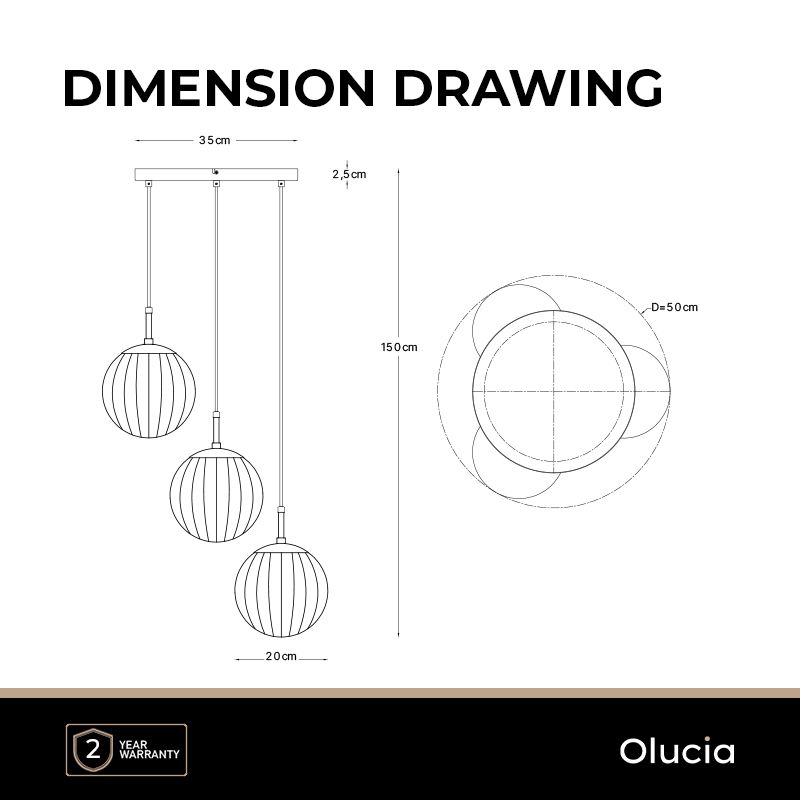 • 3 x E27 lamp holder (excl. light bulbs)