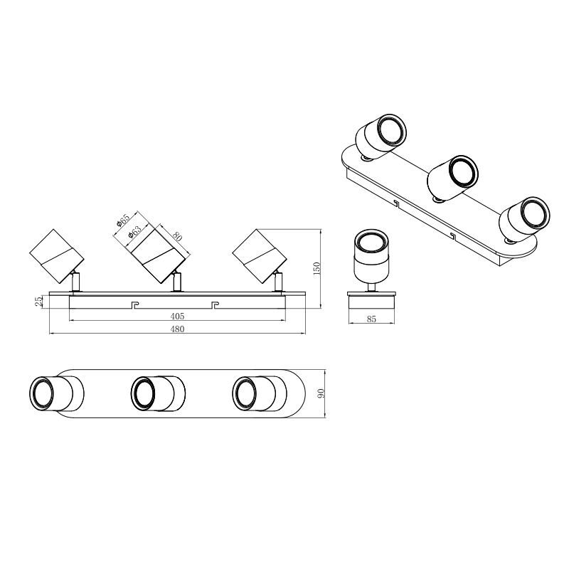 • 3 x GU10 lamp holder (excl. light bulbs)