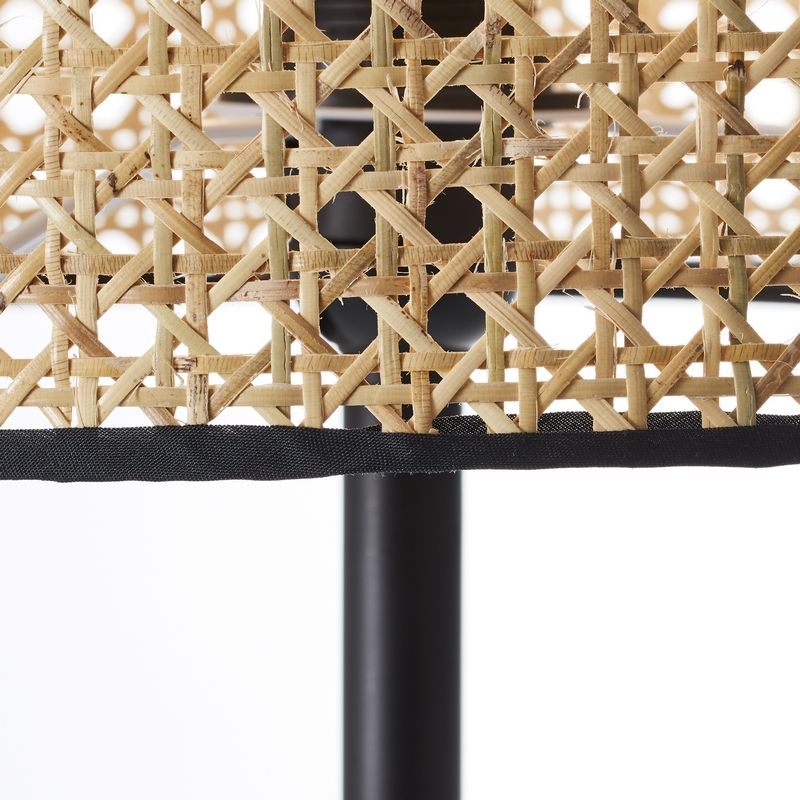 Product information Maximum wattage 60 Supply voltage 220-240V Number of lights 1 Lampholder type E27 Product information Light included No Width in cm 30 Diameter in cm 30 Weight in KG 3.19 Height in cm 154 Dimmable Yes (not included) Warranty 2 years IP classification IP20 (dustproof) Colour Brown Material Metal, Rattan With switch Yes With cord and plug Yes Area Living room, Bedroom, Hall Style Rustic Switch type On/off switch on the cord Article number Q27629 - Home