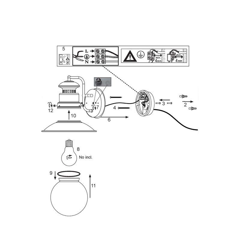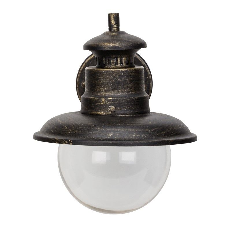 Product information Maximum wattage 60 Supply voltage 220-240V Number of lights 1 Lampholder type E27 Product information Light included No Width in cm 21.5 Diameter in cm 21.5 Weight in KG 1.335 Height in cm 26 Length in cm 25 Dimmable Yes (not included) Warranty 2 years IP classification IP44 (water proof) Colour Gold Material Metal, Glass Style Rustic Article number Q11062 - Home