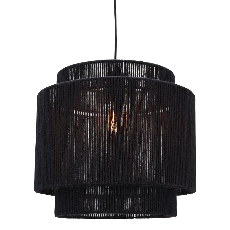 The rustic pendant light Sanny has the colour black and is made of jute. The black pendant light is supplied without a light source. In this lamp a light source with a E27 lamp holder is needed, the maximum wattage of the light source must not exceed 40 watt.