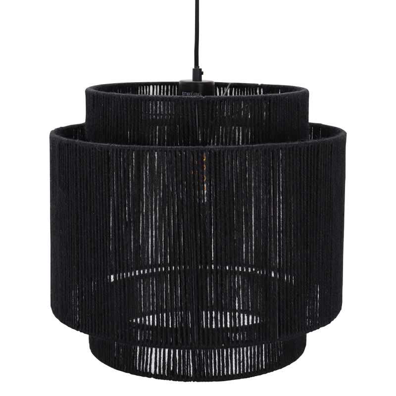 Product information Maximum wattage 40 Supply voltage 220-240V Number of lights 1 Lampholder type E27 Product information Light included No Width in cm 40 Width base/mounting plate 10 Diameter in cm 40 Height in cm 150 Height base/mounting plate 2.5 Length in cm 40 Length base/mounting plate 10 Dimmable Yes (not included) Warranty 2 years IP classification IP20 (dustproof) Colour Black Material Metal, Jute Style Rustic Article number Q11495 - Home