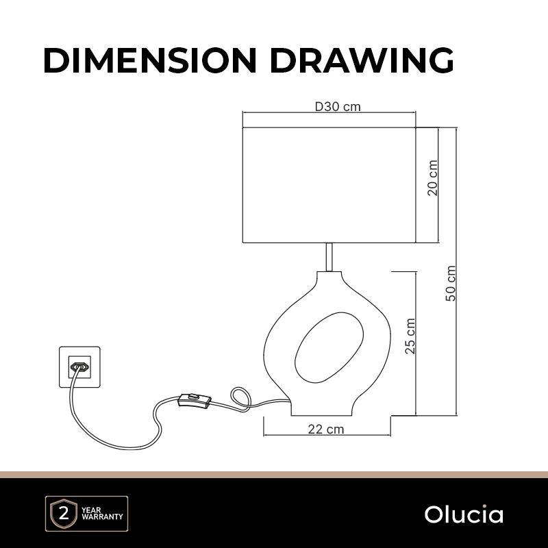 Product information Maximum wattage 7 Supply voltage 220-240V Number of lights 1 Lampholder type E27 Product information Light included No Width in cm 30 Diameter in cm 30 Height in cm 50 Length in cm 30 Dimmable Yes (not included) Warranty 2 years IP classification IP20 (dustproof) Colour Brown, Black Material Plastic, Fabric With switch Yes With cord and plug Yes Style Rustic Switch type On/off switch on the cord Article number Q11930 - Home