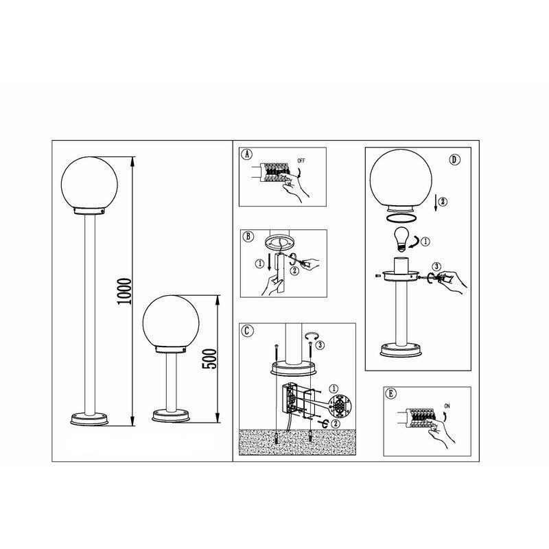 Product information Maximum wattage 60 Supply voltage 220-240V Number of lights 1 Lampholder type E27 Product information Light included No Width in cm 20 Diameter in cm 20 Weight in KG 1.4 Height in cm 50 Dimmable Yes (not included) Warranty 2 years IP classification IP44 (water proof) Colour Silver Material Stainless steel With switch No Style Basic Article number Q16011 - Home