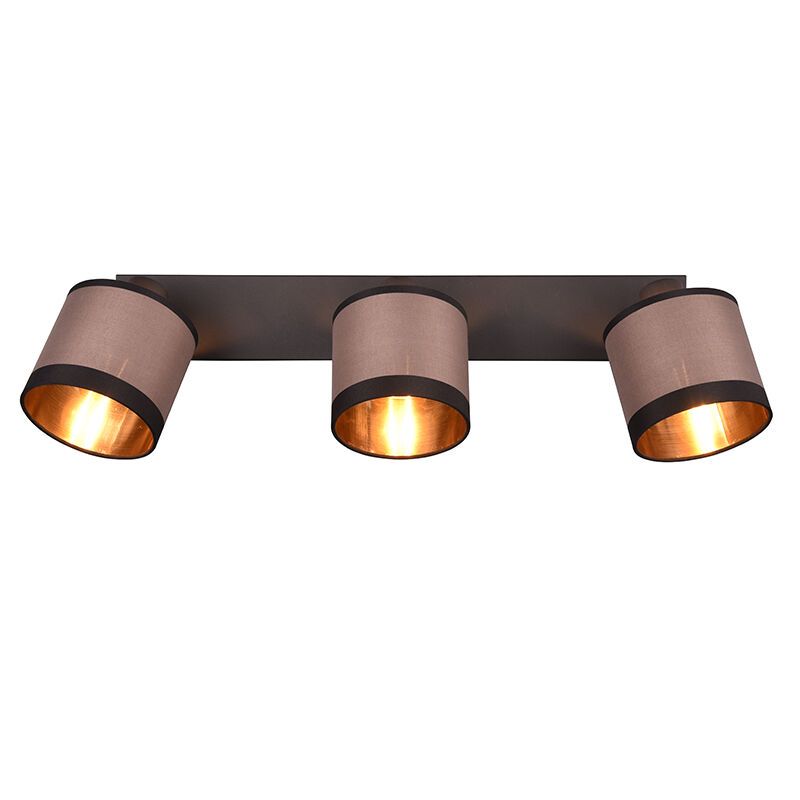 The taupe ceiling spotlight Denley has the style modern and is made of fabric. This modern ceiling spotlight has 3 E14 lamp holders and is supplied excluding 3 light sources. The lamp can accommodate light sources with a maximum power of 10 watts per bulb.