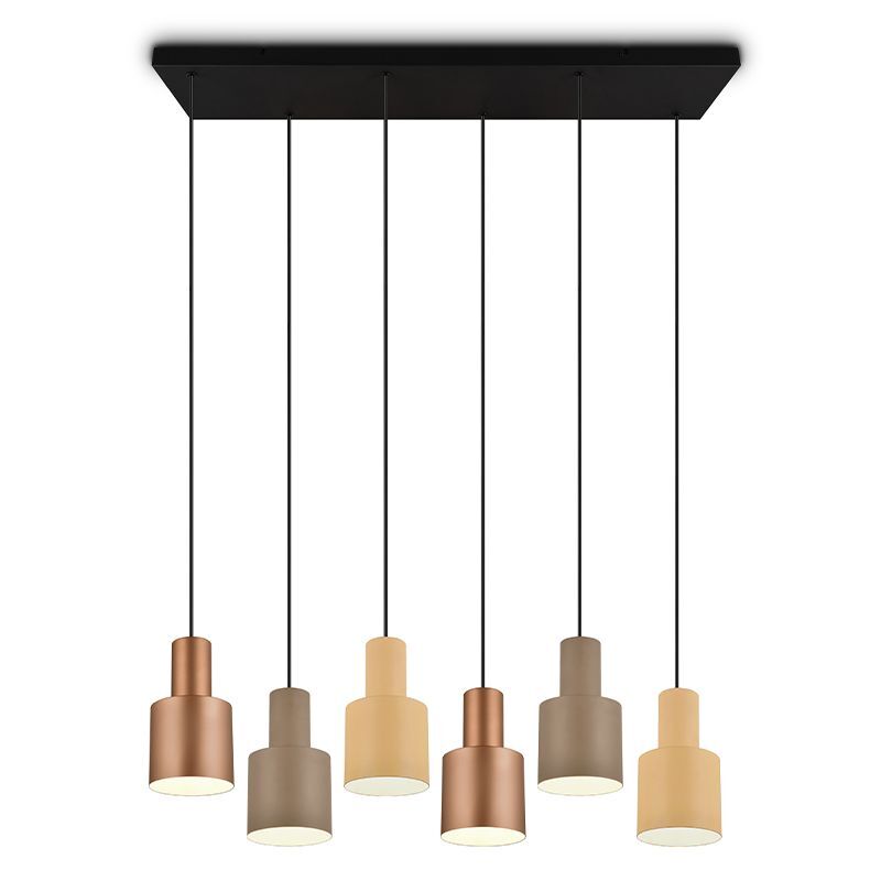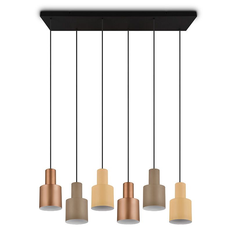 The taupe pendant light Amila has the style modern and is made of metal. This modern pendant light has 6 E27 lamp holders and is supplied excluding 6 light sources. The lamp can accommodate light sources with a maximum power of 40 watts per bulb.