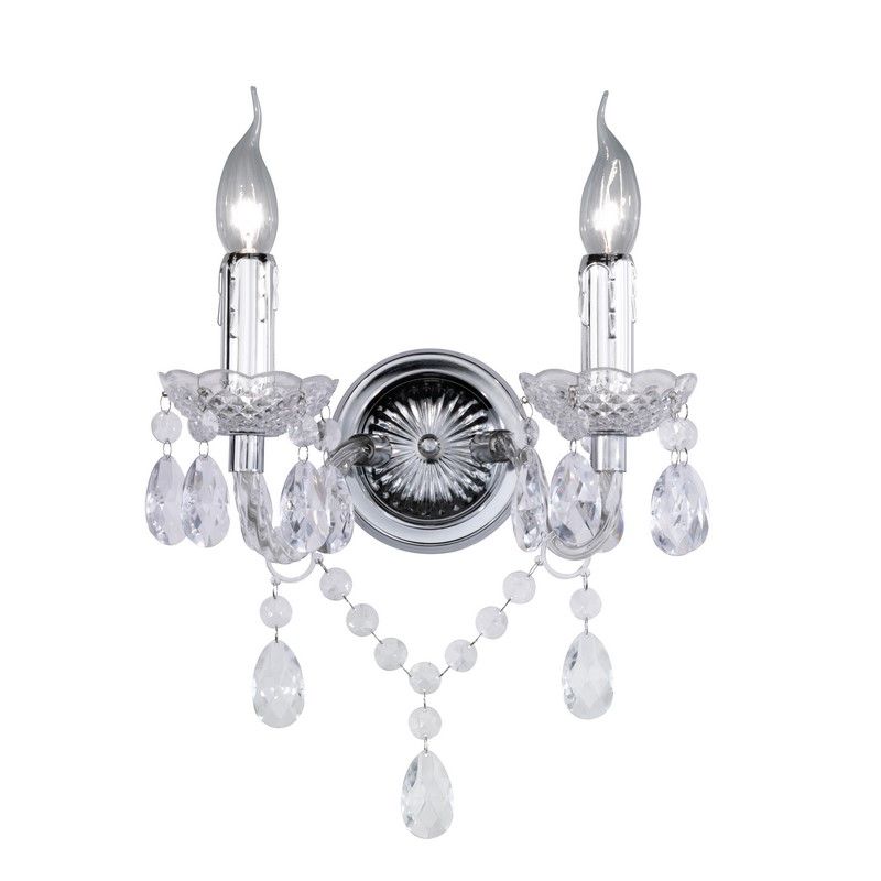 The transparent wall light Pedra has the style classic and is made of acrylic. This classic wall light has 2 E14 lamp holders and is supplied excluding 2 light sources. The lamp can accommodate light sources with a maximum power of 40 watts per bulb.